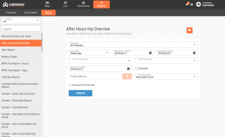Cartrack’s Fleet Management System provides detailed statistics about driver behaviour through proprietary scorecards, real-time activity monitoring and comprehensive reports. Helping businesses improve safety, reduce risk, and optimise their fleet operations.